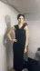 Chic black midi dress with a sleek silhouette. Perfect for elegant occasions. Raised flower appliqué detailing. Three strap back treatment. Pullover style. Deep side split. Fabric content in photos. Comes with scarf to enhance the look.