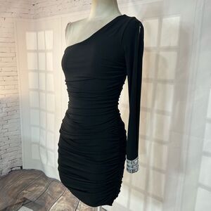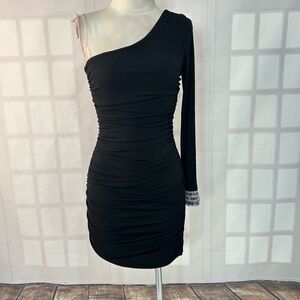 City Triangles Black Ruched Bodycon One Shoulder Mini Dress Size S