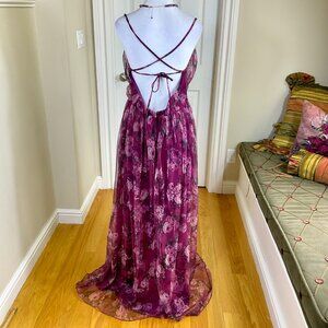 City Triangles Dress Y2K Formal Gown Purple Pink Floral Open Back Velvet (11)