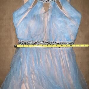 City Triangles Dress beaded cutout halter dress tulle baby blue nude size 5