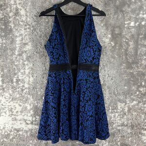 City Triangles Junior Sz 10/11 Floral Lace Sleeveless Flare Mini Dress Blue Zip