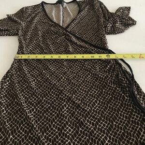 City Triangles Sz M Wrap Dress Fit & Flare Midi Dress 3/4 Sleeve Stretch Spandex Brown Office Casual