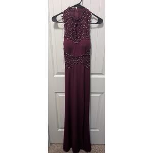 City Triangles Maroon Maxi Dress Formal Prom Lace Embellished Rhinestones Size 5