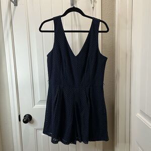 City Triangles Navy Blue Eyelet Sleeveless V Neck Back Romper Shorts Juniors 13