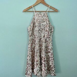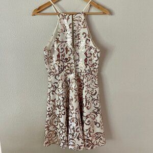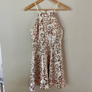 City Triangles Off White/Cream Fit & Flare Dress with Rose Gold Sequins, size 7