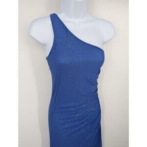 City Triangles One Shoulder Blue Glitter Maxi Dress Size M Made in USA