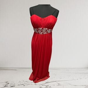 City Triangles Red Strapless Evening Gown/Prom Dress With Rhinestones Size 1.