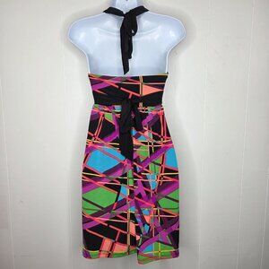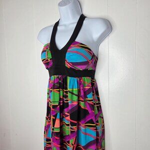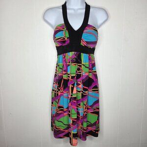 City Triangles Womens Abstract Halter Neck Baby Doll Dress Size S Stretch Bright