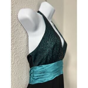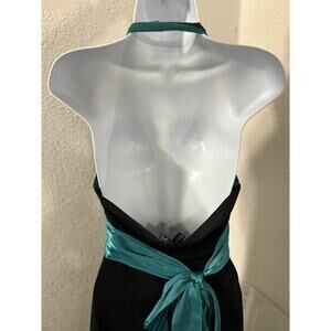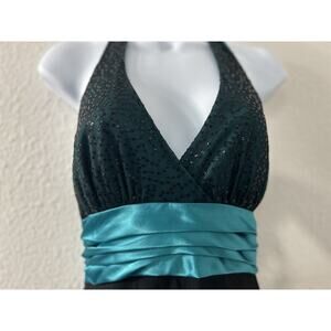 City Triangles Womens Halter Dress Black Sequins & Turquoise Bow Size M Fairy