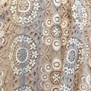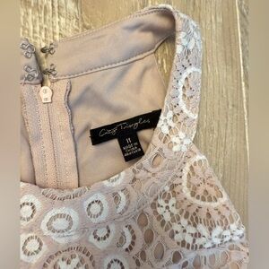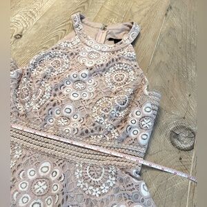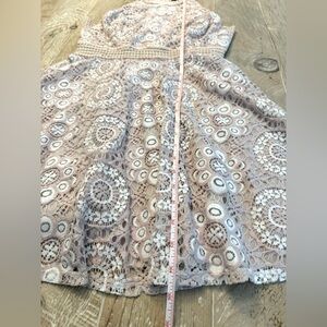Perfect wedding guest dress! City Triangles soft blush pink / white crochet lace mini circle skirt dress M