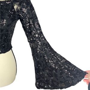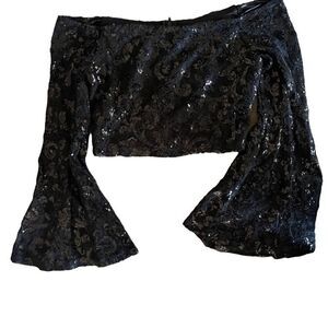 City Triangles sequins cropped cold shoulder black top w bell sleeves sz 5