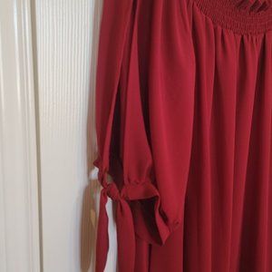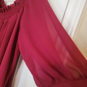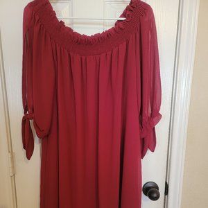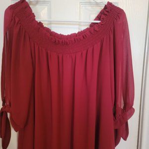 City Triangles tunic, off shoulder, maroon, 1X (Junior Plus)
