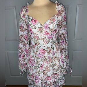 City Vibe Romantic White Floral Mini Dress – Size Medium