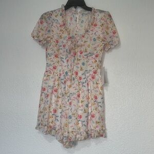 City Vibe Floral Print Short Sleeve Ruffle Flounce Hem Romper