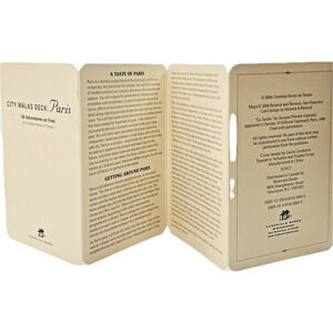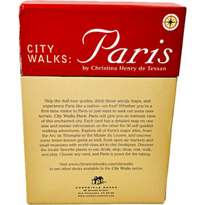 Each card has a detailed map on one side and insider information on the other for 50 self-guided walking adventures. Explore all of Paris's major sites, from the Arc de Triomphe to the Musée du Louvre, and uncover some lesser-known gems as well, from open-air markets and small museums with world-class art to chic boutiques. Discover the locals' favorite places to eat, drink, stop, shop, rest, walk, and play. Choose any card, and Paris is yours for the taking.