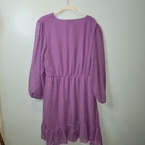 This City Chic dress is a flirty and stylish choice for a summer wedding or casual party. The wild dobby faux wrap design in lilac color adds a touch of elegance, while the long sleeves provide comfort. The fit & flare style with a knee-length A-line dress silhouette is perfect for a chic and fun summer look. The size 14 regular fit ensures a comfortable and flattering fit for women looking for a versatile and trendy dress option.