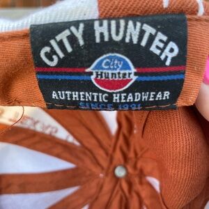 If you are a Texas fan, this is the perfect hat for you, City hunter Texas Long horns embroidered cap Velcro adjustable cap one size condition preowned it has a few stains on the back refer to pictures for details.