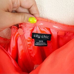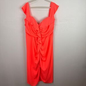 City Chic Orange Neon Ruffle Midi Off Shoulder Dress Size 18