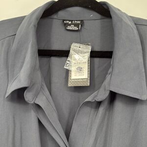 City Chic Tie Detail Dress Collared Smoke Grey XXL New