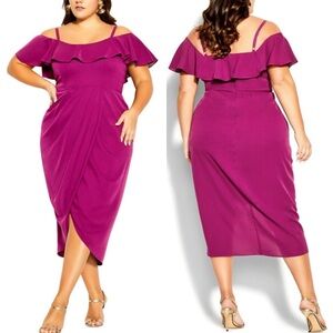 Citychic Flirtation Dress Faux Wrap Midi Dress Off Shoulder Cerise Sz 24 NWT