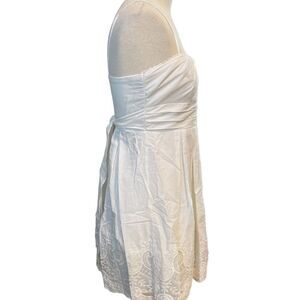 The dress is very well made. Fully lined, modesty padding, the dress has self attached tie for in the back of dress. I just tied a slip knot, you could tie it in a bow. Very feminine. Machine wash hang to dry. Fresh from dry cleaners.