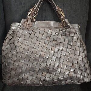 Civico 93 Large Brown Woven Leather Tote Bag Made In Italy