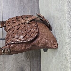 Civico93 Brown Leather Woven Crossbody Shoulder Bag Purse
