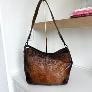 Civico93 Tooled Leather Shoulder Bag Brown Made in Italy Boho Western Tote