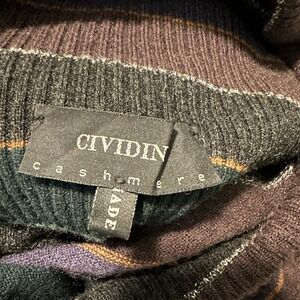 Cividini Women 44 M Sweater Cashmere Funnel Neck Half Sleeve Striped Multicolor