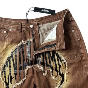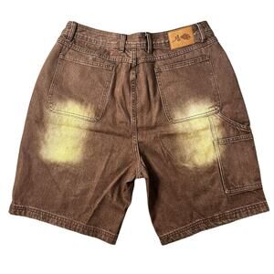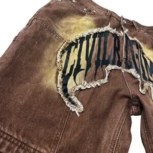 Civil Regime NWT RARE Brown Denim Shorts Logo Spellout Size 32 Bleach Distressed Streetwear