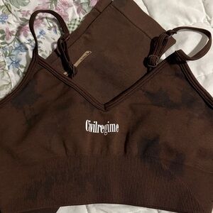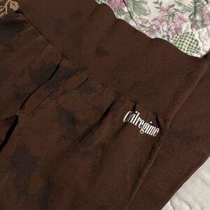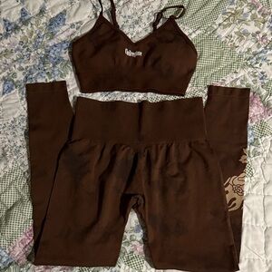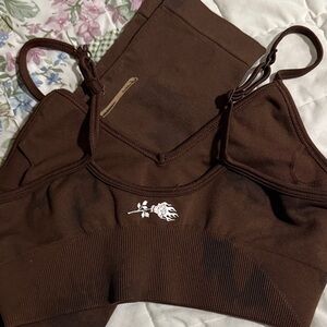 Chocolate brown sports bra and leggings by Civil Regime. Perfect for workouts. Top is Small and bottoms Medium. Like new.