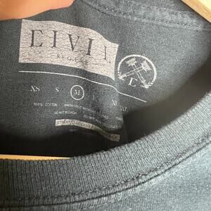 CONDITION: PREOWNED - a couple of spots on back hem and sleeve as shown. Cracking on graphic.