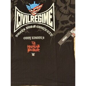 This is a highly sought-after, Brand New with Tags (NWT) collaboration tee from premium streetwear brand Civil Regime and WWE superstar Cody Rhodes, "The American Nightmare".