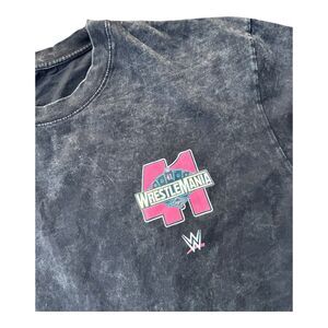Civil Regime x WWE WrestleMania 41 Las Vegas tee in excellent used condition. Features bold front and back graphics with neon pink WrestleMania 41 print, roses from concrete design, and distressed vintage wash style. Size 3XL with actual measurements: pit-to-pit 26.5 inches, length 33 inches. High-quality cotton with oversized streetwear fit. Rare collab piece, perfect for WWE fans, collectors, and vintage streetwear lovers.