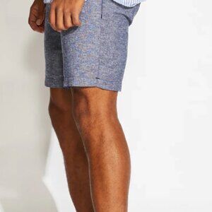 Civil Society Blue Slim Fit Linen Blend Elastic Waistband Shorts