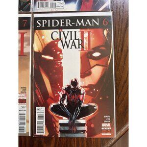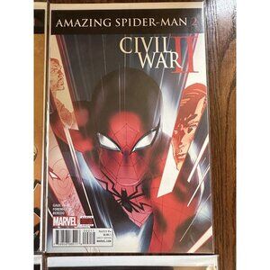 This is a mini-series of Civil War II: Amazing Spider-Man comics, featuring issues #1, #2, #6, and #7. The comics are in English language and are published by Marvel Comics in the US. The series is part of the Marvel Cinematic Universe and features Spider-Man (Peter Parker) as one of the main characters. The comics are in a modern age era (1992-now) and are perfect for general audiences who enjoy action, superheroes, and adventure genres.