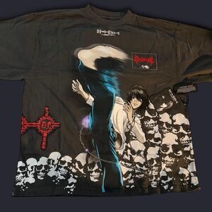 anime motif, gothic graphics, oversized tee, skull detail, heavyweight cotton, dropped shoulders, streetwear, manga inspired, bold print, graphic design