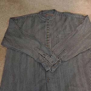 Civilian Men’s Shirt Collarless SizeL Striped Irish Cotton Blue Poet Musician