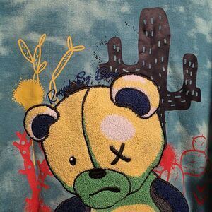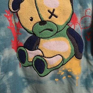 Civilized Embroidered Terry Teddy Bear Graphic Sweatshirt Large Tie Dye Teal Blu