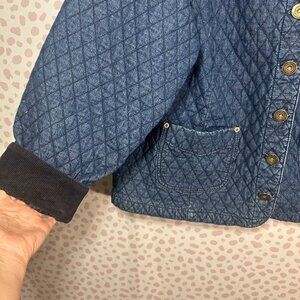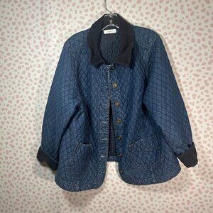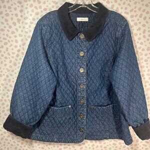Cj Banks 2X Womens Quilted Denim Core Coat Barn Jacket Corduroy Trim Fisherman