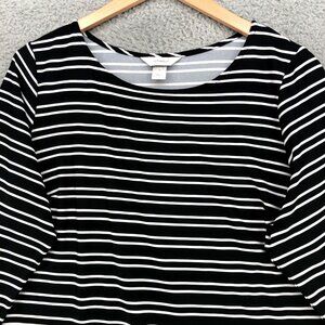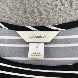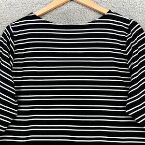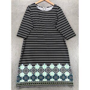 Cj Banks Dress Womens 1X Plus Black Striped Shift Midi 3/4 Sleeve Stretch Knit