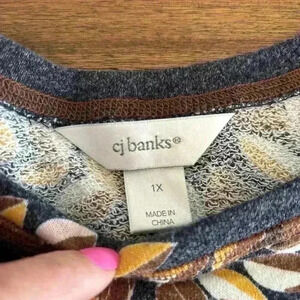 Cj Banks Leaf Blouse/ Sweatshirt 3/4 Sleeve Size 1X