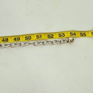 • Features interconnected oval and oblong metal links, and it has a chain with a clasp and a small ball charm at the end for adjustment