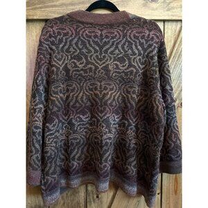 Versatile layering piece with intricate paisley-inspired pattern in muted brown and mauve tones.