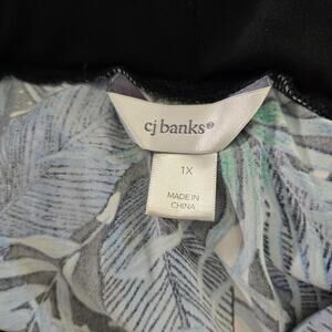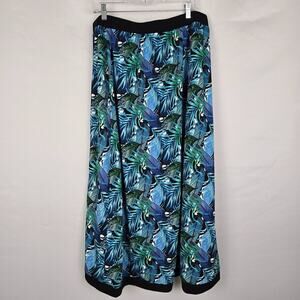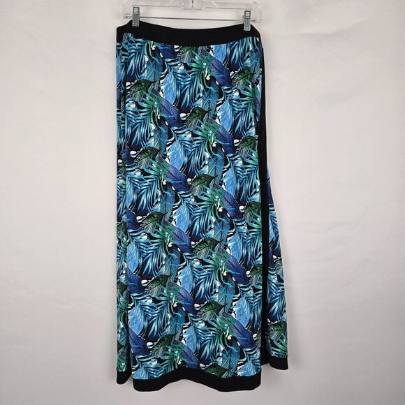 Cj Banks Skirt Women's 1X Blue Green Tropical Maxi Elastic Waist Side Slit