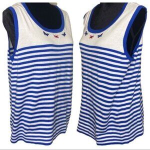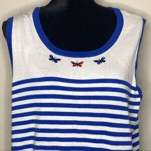 Cj Banks Womens Blue White Sleeveless Knit Tank Top Embroidered Butterfly 14W