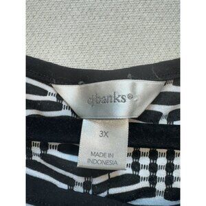 Cj Banks Womens Tunic Top Round Neck Asymmetrical Size 3X Black White 3/4 Sleeve