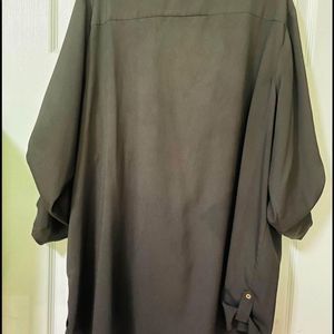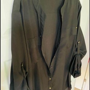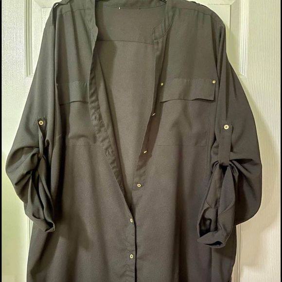 Size women’s XXL. Has buttons on the sleeves so you can wear this as a long sleeve or a three-quarter sleeve. Super lightweight and comfortable. Can layer this as well. Very classy and pretty.