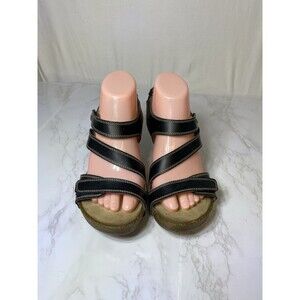 Clacks Collections 6.5W Womens Soft Cushion Wedge Black Sandals Sling Backs Flex