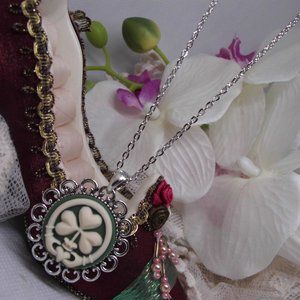 Claddagh Celtic Irish clover Cameo Necklace Pendant Jewelry